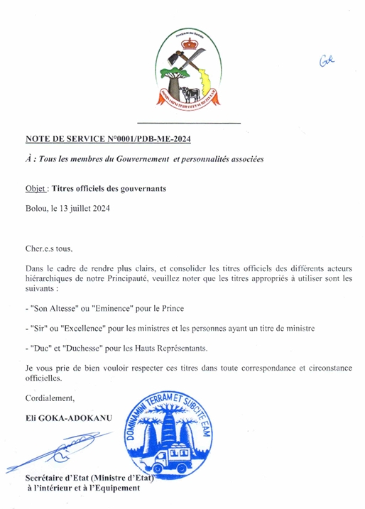 NOTE DE SERVICE N°0001